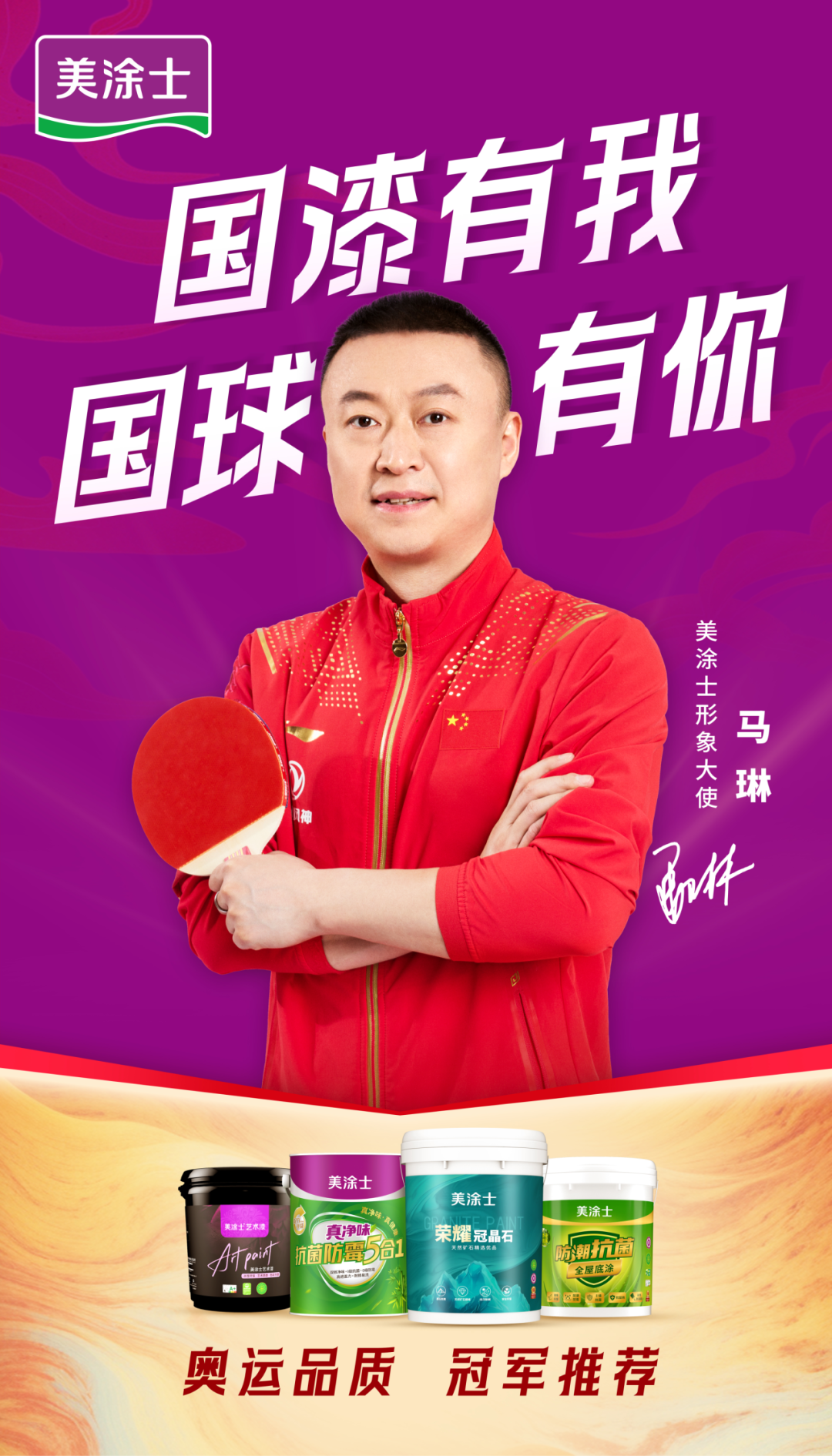 作为民族涂料领导品牌,美涂士在品牌塑造上持续保持高投入,不断提升品牌的知名度与美誉度,尤其在众多重量级世界体育赛事上,也均能看到美涂士的身影。斥巨资高光亮相世界杯,签约世界杯冠军潘飞鸿作为冠军品质体验官,让“民族涂料 中国制造”闪耀世界舞台。荣膺“大国品牌2023年度潜力品牌奖”,入选“CCTV央视网甄选中国优势品牌”,成为获央视认证的国货品牌,更奠定了美涂士无法超越的品牌优势。美涂士自创立以来,一直专注于高品质健康涂料的发展,现在已形成工业涂料、艺术涂料、仿石漆、乳胶漆、工程涂料、家具漆、胶粘剂、节能装饰板、防水基辅材等九大专业品类优势,成功打造出全品类的一站式的“九美一体”定制化健康美丽涂装解决方案。而马琳作为中国乒乓球界的传奇人物,不仅在职业生涯中获得了众多荣誉,更在退役后转型为国家乒乓球队女队主教练,带领队伍在国际赛场上屡创佳绩。此次美涂士与马琳的合作,正是基于双方在追求卓越、不断超越的精神层面的高度契合。在持续创新和探索的路上,美涂士拥有足够亮眼的底气。2024年美涂士获得“广东涂料35年科技创新示范企业”!多年来荣获了高新技术企业称号认定、国家工信部行业单项冠军企业、国家工信部首批“专精特新”重点小巨人企业、中国500强最有价值品牌企业、“国货之光”中国优势品牌、国家知识产权优势企业、全球涂料20强、亚太涂料10强……这都是美涂士用实力书写国货品牌辉煌的篇章。美涂士深知,在激烈的市场竞争中,唯有不断创新才能立于不败之地。通过与马琳的合作,美涂士将进一步强化自身的创新能力,借鉴国乒团队的拼搏精神和冠军经验,将这种精神融入到产品研发和生产过程中。无论是环保材料的应用还是技术创新,美涂士都将以冠军标准要求自己,力求在每一个细节上做到极致。“国漆有我,国球有你”,这句口号不仅仅是一句简单的宣传语,更是美涂士与奥运冠军马琳合作精神的真实写照。以冠军之名,为品质加冕!以奥运品质不断突破,与“国球精神”同频共振。未来,美涂士将继续坚持和发扬“国球精神”,深耕涂料领域勇攀高峰,以更高的品质标准、更快的发展速度和更强的品牌声量,无畏挑战、勇往直前!让世界见证中国品牌的魅力!