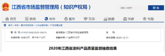近期,江西省市场监督管理局对全省涂料产品质量进行了监督抽查。