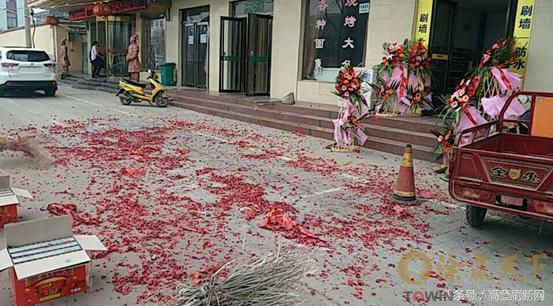 一大清早,黄总的店面就摆满了四面八方送来的花篮和彩炮,很是热闹。