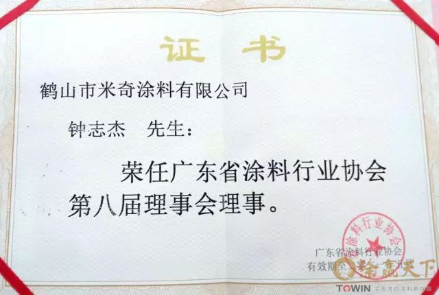 会议开始,广东省涂料行业协会会长黄开致辞,她对出席本次大会的领导嘉宾表示感谢,并祝大会圆满成功。大会开始前的广东省涂料行业协会第七届理事会第八次工作会上,黄开会长做《广东省涂料行业协会第七届理事会工作报告》,介绍了十年来广东涂料行业经济发展状况。会上,投票审议通过第八届理事会换届选举相关文件。 儿童漆生产示范基地 大家应该记得,3年前,授予鹤山市米奇涂料有限公司广东省儿童漆生产示范基地的正是黄开会长! 理事单位 米奇漆作为中国儿童漆创新领航品牌,在此次会议上荣获广东省涂料行业协会第八届理事会“理事单位”牌匾! 理事会理事 鹤山市米奇涂料有限公司总经理钟志杰先生荣任广东省涂料行业协会第八届理事会理事!