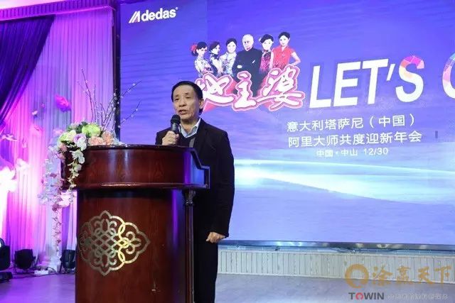广东涂料协会秘书长吕水列先生发表致辞,他提到: 2016我们携手走过,2017我们共同跨越。在市场环境严峻的情况下,并不影响阿里大师前进的步伐,在市场营销方面依旧活跃,对于产品的创新以及新工厂的顺利投产等一系列动作将使阿里大师进入一个稳定健康的发展轨道,愿阿里大师在2017年里能够在市场营销方面突破瓶颈,以更团结、更活跃的姿态实现企业的升级转型。