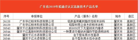 千江此次入选产品分别为:广东华江粉末科技有限公司铝表面用氟树脂改性粉末涂料、铝型材用立体木纹粉末涂料;肇庆千江水漆有限公司自干型车用水性面漆、自干型车用水性中涂漆;肇庆千江高新材料科技股份有限公司N58058天下无菌纳米内墙漆、一种夏凉冬暖纳米隔热节能透明涂料。