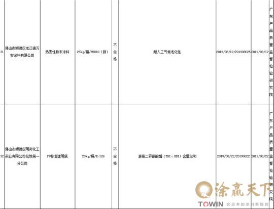2019年12月31日,佛山市市场监督管理局官网发布2019年第一批佛山市工业产品(含食品相关产品)质量市级监督抽查产品信息及企业名单公示。抽检验结果(第一批)(不合格信息)包括了佛山市顺德区顾宝化工有限公司、佛山市南海区宏坚粘合剂厂、佛山市顺德区龙江镇万安涂料有限公司、佛山市顺德区明邦化工实业有限公司伦教第一分公司等在内的化工/涂料企业产品。