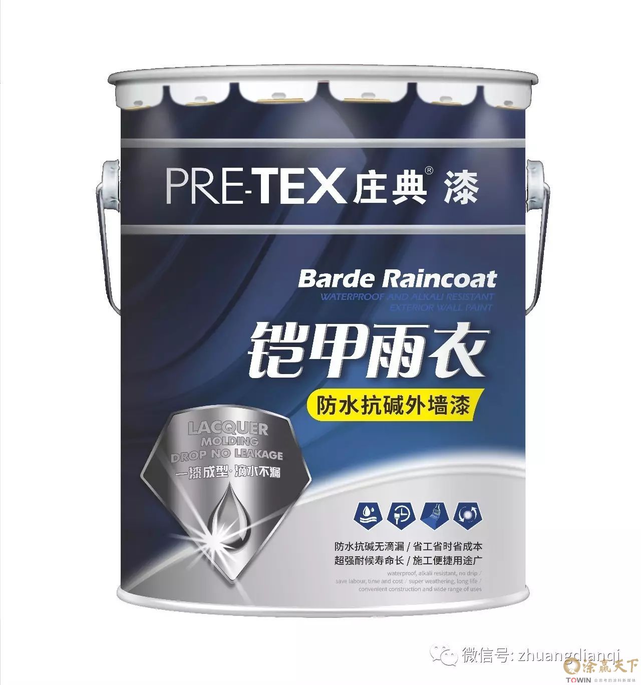 庄典漆“铠甲雨衣”防水抗碱外墙漆的横空出世,充分诠释了凌骏涂料“成人达己”的企业理念...