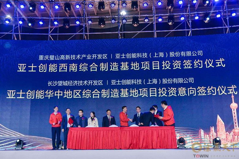 庆典仪式上,亚士创能分别与重庆璧山和长沙望城两地达成战略合作。