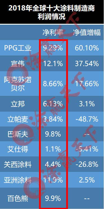 2018年外资涂料企业销售十强企业包括:立邦、PPG、阿克苏诺贝尔、佐敦、巴斯夫、宣伟、湘江涂料(合资)、艾仕得、爱迪生、派丽集团等。其中增长幅度较大的有PPG、宣伟、派丽集团等。2018年外资涂料企业前十位占据中国市场份额约19%,与上一年度基本持平没有明显变化。