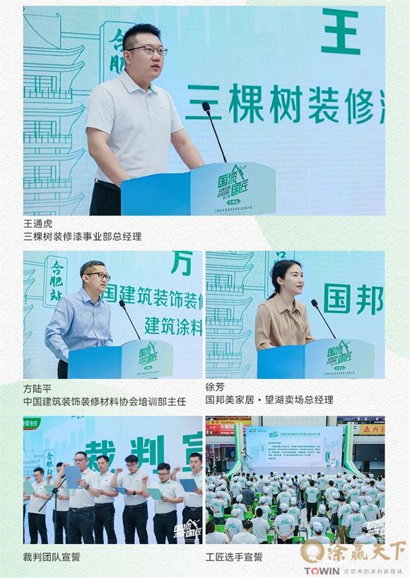 涂赢天下讯:4月28日,2025三棵树“国漆国匠”第三届全国建筑涂装职业技能大赛首站于安徽合肥隆重启幕,来自全国各地的涂装精英齐聚一堂,以精湛技艺诠释新时代工匠精神。本届大赛由中国建筑装饰装修材料协会全程指导,央广网等众多行业内外媒体支持报道,赛事规模将迎来全面升级。2025年1月,中共中央、国务院发布《教育强国建设规划纲要(2024—2035年)》提出,要加快建设现代职业教育体系,培养大国工匠、能工巧匠、高技能人才。近年来,人社部大力推行职业技能等级认定试点,三棵树作为首批试点单位,率先在行业内创新"以赛促评"模式,为建筑涂装行业培育兼具传统技艺与现代创新力的高素质产业工人,以民族企业之责践行“培养一个工匠,振兴一门技艺,带动一个产业”的社会责任。