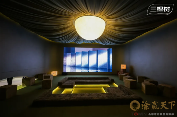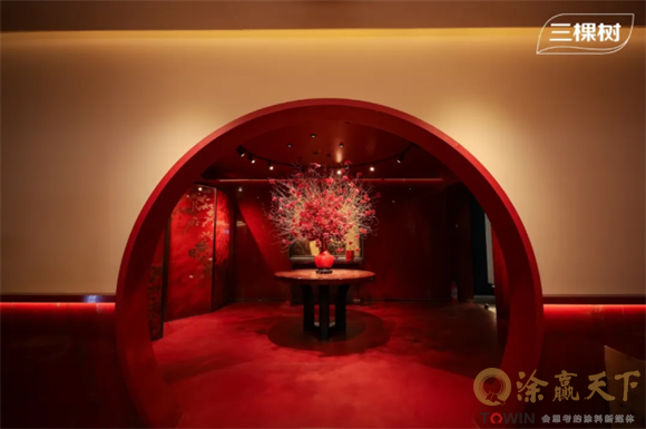 与此同时,三棵树与覃思老师合作的联合展厅,以“大漆活化”为核心,打造了3000㎡多品牌综合展示空间。这里集中呈现大漆在家具、器物与文创中的现代应用,从墙面装饰到家居配套,皆采用天然大漆制成。作为中国八千年文明的见证,大漆曾与日常生活紧密相连,如今在三棵树的推动下,正重新回归大众视野。