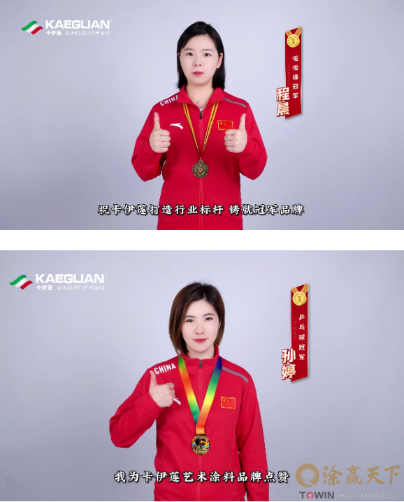 同年7月"卡伊莲艺术涂料"被啦啦操冠军程晨、乒乓球冠军孙婷、体操冠军徐志鹏冠军纷纷点赞。作为各个领域里的冠军,亮眼成绩的背后,是经历无数次跌倒与重新站起来的坚持,冠军是提升自我的革新精神,激励我们奋发有为。冠军不是终点,而是一个更高的起点。与卡伊莲艺术涂料品牌一贯坚持的匠心产品打造、精雕细琢的理念不谋而合。