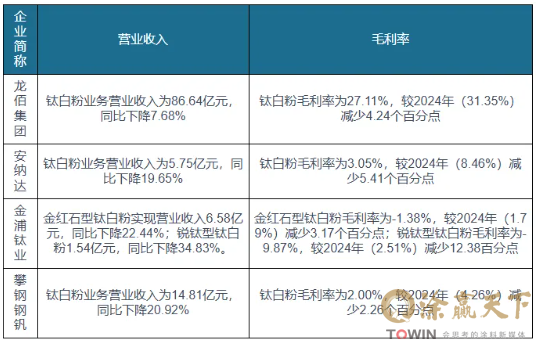 价格持续下行让行业盈利空间大幅收窄,中小型企业亏损至现金流以下,头部企业也受波及——金浦钛业2025年上半年金红石型钛白粉毛利率转为-1.38%,锐钛型跌至-9.87%,攀钢钢钒钛白粉业务毛利率仅2.00%,较2024年减少2.26个百分点,成本压力倒逼行业通过调价寻求盈利修复。