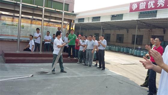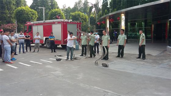 为了让大家更加了解消防道具的具体使用方法,卢队长及其队员分别对水枪和灭火器两种消防道具的使用进行介绍和示范,并且让全体员工进行实践操作,从而真正做到在自救的同时也可以帮助其他人。