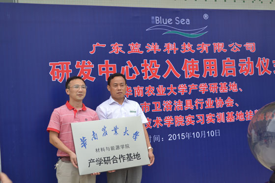 之后,蓝洋科技分别接受了华南农业大学材料与能源学院颁发的“华南农业大学材料与能源学院产学研合作基地”、“华南农业大学材料与能源学院实习基地”牌匾。此外,还接受了由佛山市卫浴洁具行业协会颁发的“佛山市卫浴洁具行业协会、广东职业技术学院实习实训基地”牌匾。这标志着蓝洋科技将与以上单位达成合作关系,走科技兴企的特色之路。