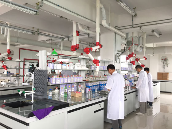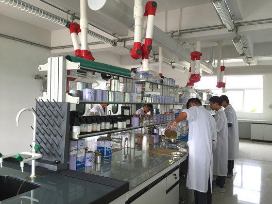 仪式开始前,由公司董事长肖亚亮、总经理李小平亲自带领全体嘉宾、媒体及公司管理层一起参观了厂区并重点参观了新建成的研发中心。据了解,蓝洋科技研发中心大楼有三层,设有原材料检测室、油性木器涂料实验室、紫外光(UV)固化涂料实验室、水性木器漆实验室、无尘喷房等。研发中心内配有从美国、德国、日本等地引进的40多套世界领先的精密实验检测设备,如:气相色谱仪、恒温恒湿试验机、麦考特磁性测厚仪、UV滚涂、淋涂、改色、腻子机械等,实验室内安装的先进的通风系统、3套无尘喷房系统以及高档次实验台架等设备均达到了国内的先进水平。